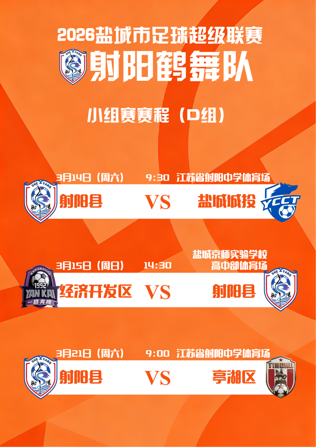 3月14日,盐城市足球超级联赛射阳主场首秀开战!观赛全攻略来了→