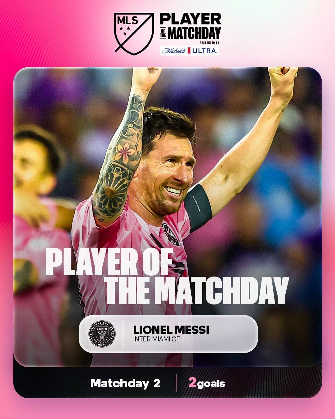 北京时间3月3日,美职联官方宣布梅西获得美职联第二周最佳球员,据统计,这是梅西第13次获得美职联周最佳球员,距多诺万的纪录还差6次。