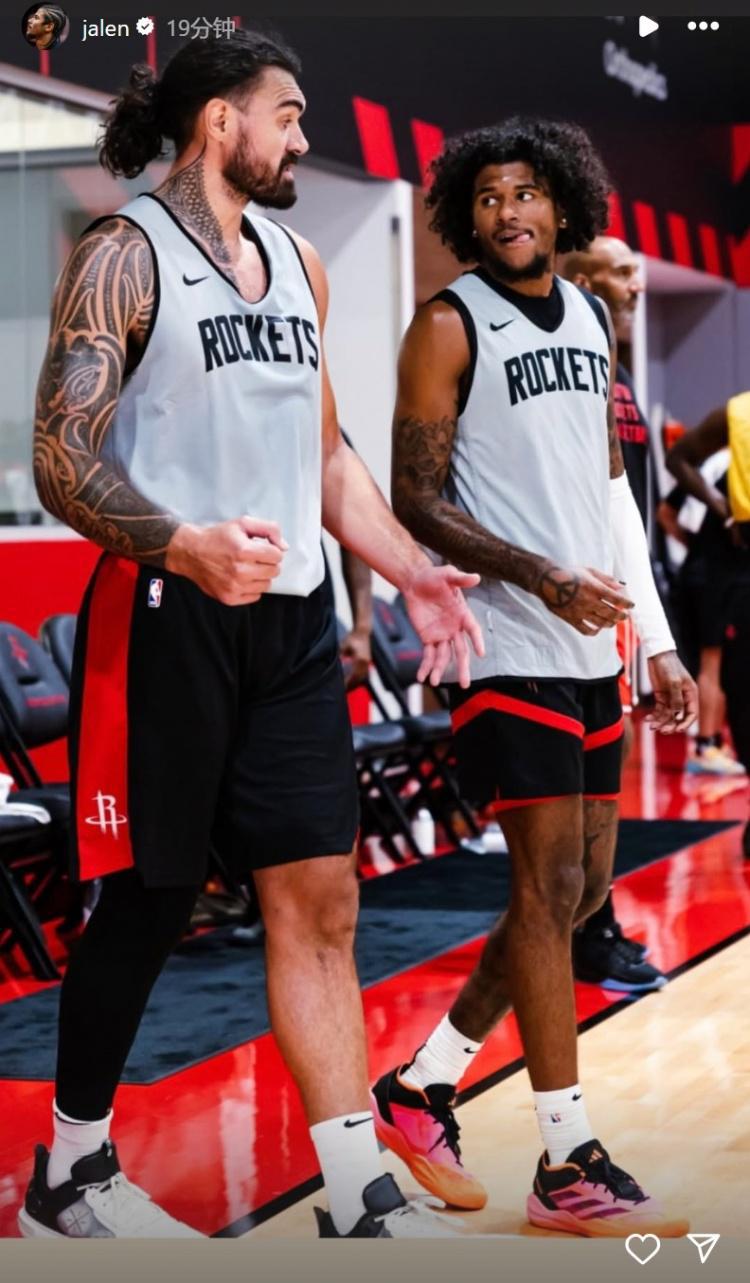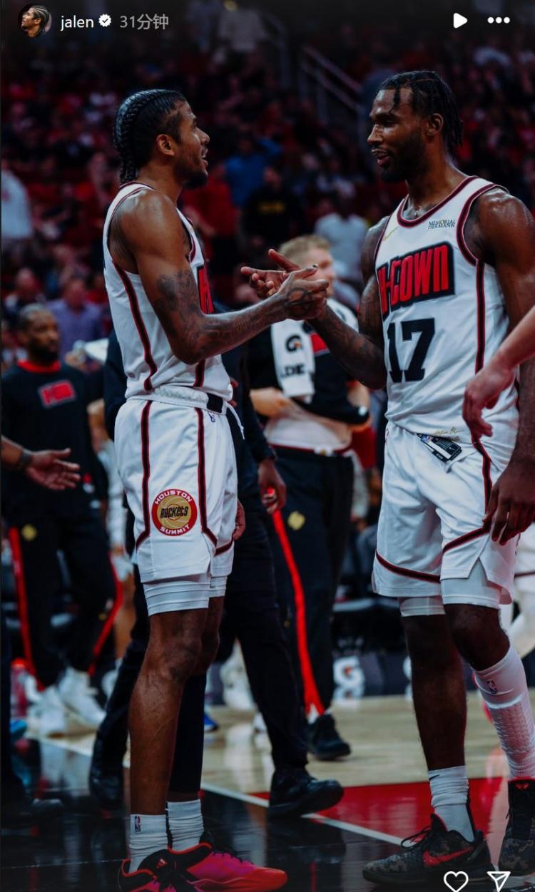 杰伦-格林在INS上晒了自己和火箭队友的合照进行告别。