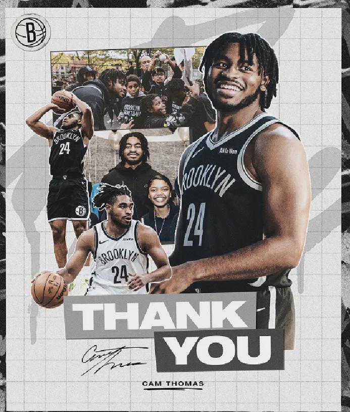 托马斯出生于2001年10月13日,身高1米91,21届首轮第27号秀,为期四年半的篮网生涯,合计出战239场常规赛,场均上阵23.3分钟,贡献15.2分2.5板2.2助1.5失误,三项命中率43.5%、34.3%和85.8%,曾在2023年初连续三场40+,分别轰下44分、47分和43分。