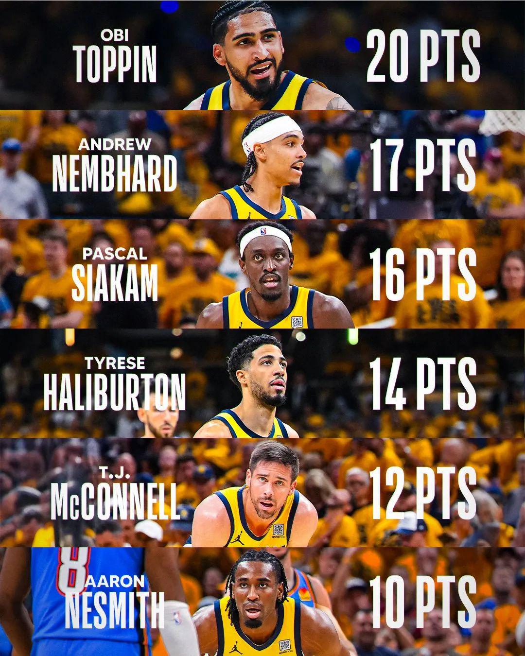 西亚卡姆和哈利伯顿依然是这支球队的巨星,但步行者强的不只是这两位,这一点他们的季后赛之旅已经一次又一次展现给了全世界球迷看,也许他们没有14马刺那种水银泻地般的传导球,但这何尝不是一种美妙的团队篮球。